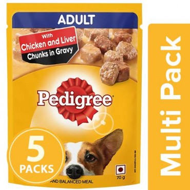 Pedigree Gravy is a nutritious and adjusted nourishment for your pet canine. Made with excellent fixings, Pedigree gives canines the 5 Signs of Good Health - solid skin and coat, solid bones and teeth, sound stomach related framework, solid muscles and a more grounded insusceptible framework. Containing a higher dampness content, Pedigree sauce food pockets are ideal to keep your pooch hydrated and vigorous. It tends to be blended in with any feast - Pedigree dry food or home-prepared food - to upgrade taste and improve dampness content.